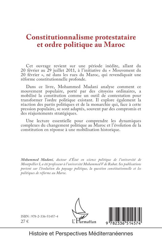 Cet ouvrage revient sur une période inédite, allant du 20 février au 29 juillet 2011, à l'initiative du Mouvement du 20 février, né dans les rues du Maroc, qui revendiquait une réforme constitutionnelle profonde. Dans ce livre, Mohammed Madani analyse comment ce mouvement populaire, porté par des citoyens ordinaires, a mobilisé la constitution comme un outil de contestation pour transformer l'ordre politique existant. Il explore également la réaction des partis politiques et de la monarchie qui, face à cette pression populaire, se sont adaptés, souvent par des compromis et des réajustements stratégiques. Une lecture essentielle pour comprendre les dynamiques complexes du changement politique au Maroc et l'évolution de la constitution en réponse à une mobilisation historique.
