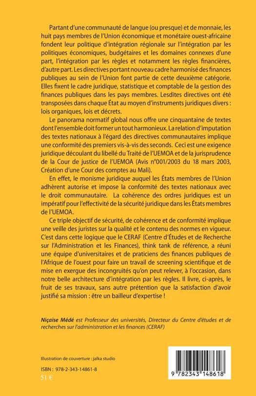 Les 8 pays de l'UEMOA fondent leur politique d'intégration régionale sur l'intégration par les politiques économiques, budgétaires et les domaines connexes d'une part, l'intégration par les règles, notamment financières, d'autre part. Le CERAF (Centre d'Etudes et de recherches sur l'Administration et les Finances), think tank de référence, a réuni une équipe d'universitaires et de praticiens de finances publiques de l'Afrique de l'Ouest. Il livre ici le fruit de ses travaux.