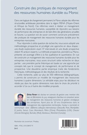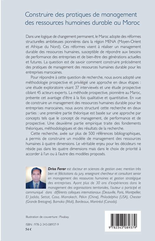 Dans une logique de changement permanent, le Maroc adopte des réformes structurelles ambitieuses. Ces réformes visent à réaliser un management durable des ressources humaines, susceptible de répondre aux besoins de performance des entreprises et de bien-être des générations actuelles et futures. Basé sur une étude prospective ciblant 45 acteurs experts, l'ouvrage tente de répondre à la question de savoir comment construire précisément des pratiques de management des ressources humaines durable pour les entreprises marocaines.