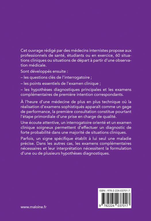 À l’heure d’une médecine de plus en plus technique où la réalisation d’examens sophistiqués apparaît comme un gage de performance, la première consultation constitue pourtant l’étape primordiale d’une prise en charge de qualité. Une écoute attentive, un interrogatoire orienté et un examen clinique soigneux permettent d’effectuer un diagnostic de forte probabilité dans une majorité de situations cliniques. Parfois, un signe spécifique établit à lui seul une maladie précise. Dans les autres cas, les examens complémentaires nécessaires et leur interprétation nécessitent la formulation d’une ou de plusieurs hypothèses diagnostiques.