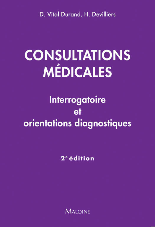 Sont développés ensuite : – les questions clés de l’interrogatoire ; – les points essentiels de l’examen clinique ; – les hypothèses diagnostiques principales et les examens complémentaires de première intention correspondants.