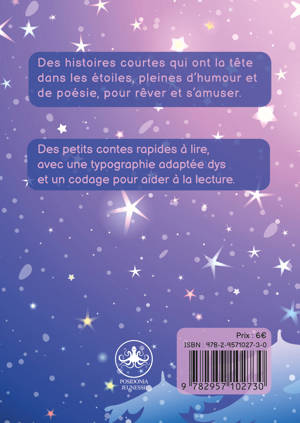 Des histoires courtes qui ont la tête dans les étoiles, pleines d’humour et de poésie, pour rêver et s’amuser. Découvrez des personnages qui vivent au plus près des étoiles.