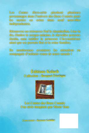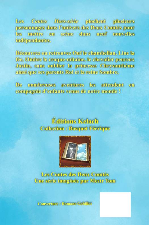 Les Contes Hors-série piochent plusieurs personnages dans l'univers des Deux Comtés pour les mettre en scène dans neuf nouvelles indépendantes. Découvrez ou retrouvez Ouf le chambellan, Line la fée, Ombre le croque-mitaine, le chevalier peureux Justin, sans oublier la princesse Chrysanthème ainsi que ses parents Roi et la reine Sombre. De nombreuses aventures les attendent en compagnie d'enfants venus de notre monde !