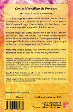On découvrira dans les Contes Merveilleux de Provence (Tomes 1 et 2) que le peuple de Provence connaissaient l'histoire du Petit Chaperon Rouge (Lou Capeiroun Rouge), ou de Cendrillon (La Gato Cendrouletto) et d'autres histoires de Diable dupé bien avant que Charles Perrault ne les écrive ou que Walt Disney n'en fasse des films. Ces contes merveilleux se transmettaient oralement, de bouche à oreille, depuis la nuit des temps. Ils prenaient en Provence des formes particulières et se disaient en provençal ou en français (la tradition des chants comme des contes étant bilingue). Ici la plupart des textes sont en provençal. Ils sont fidèlement traduits en français. C'est un travail qui par son contenu et son ampleur est inédit en Provence : comme le souligne l'universitaire Jean-Noël Pelen, dans ce domaine - les contes merveilleux - qui est l'un des plus effacé de la tradition orale, Jean Luc Domenge s'appuie d'abord sur ses propres enquêtes de terrain menées à de 1985 à 2015 auprès des gens du pays, des vallées provençales des Alpes Italiennes à la vallée du Rhône, enquêtes de vive voix et avec beaucoup de soin. La préface présente l'ensemble de ces témoins. L'oralité est restituée avec rigueur et resituée dans son contexte. Ces témoignages sont ensuite croisés avec tout ce qui a été publié en provençal depuis la fin du XIXe siècle : livres, revues, almanachs, documents souvent confidentiels ou oubliés, manuscrits inédits retrouvés ici ou là, dont Jean Luc Domenge a fait un long et minutieux travail de classement et de traduction. Place donc au Petit Poucet, à Blanche Neige et au Chat Botté, dans des versions qui vont surprendre plus d'un lecteur.