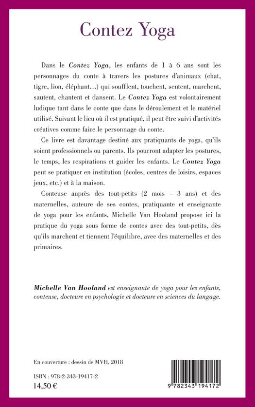 Conteuse auprès des tout-petits et des maternelles, pratiquante et enseignante de yoga pour les enfants, Michelle Van Hooland propose ici la pratique du yoga sous forme de contes avec des tout-petits, dès qu'ils marchent et tiennent l'équilibre, avec des maternelles et des primaires. Dans ce livre, les enfants de 1 à 6 ans deviennent les personnages du conte à travers les postures d'animaux (chat, tigre, lion, éléphant...) qui soufflent, touchent, sentent, marchent, sautent, chantent et dansent.