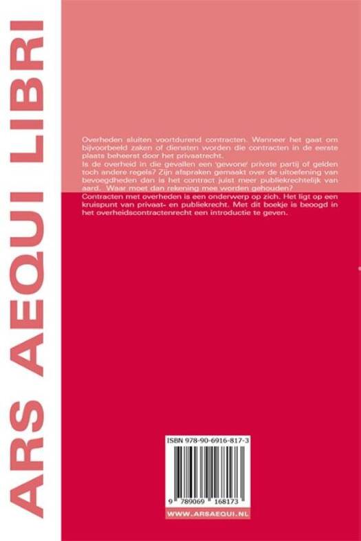 Overheden sluiten voortdurend contracten. Wanneer het gaat om bijvoorbeeld zaken of diensten worden die contracten in de eerste plaats beheerst door het privaatrecht. Is de overheid in die gevallen een 'gewone' private partij of gelden toch andere regels? Zijn afspraken gemaakt over de uitoefening van bevoegdheden dan is het contract juist meer publiekrechtelijk van aard. Waar moet dan rekening mee worden gehouden? Contracten met overheden is een onderwerp op zich. Het ligt op een kruispunt van privaat- en publiekrecht. Met dit boekje is beoogd in het overheidscontractenrecht een introductie te geven.