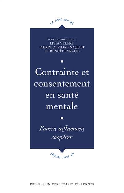 Le présent ouvrage rend compte de ces dilemmes à partir d'enquêtes empiriques menées dans le champ de la santé mentale. Qu'ils soient conduits à "forcer", à "influencer", à "coopérer", ou encore à "persuader" ou à "empêcher", les professionnels de l'aide et du soin sont orientés par deux impératifs parfois contradictoires : l'impératif de protection d'un côté, l'impératif de liberté de l'autre. La régulation de leurs pratiques s'appuie sur deux registres : celui des droits fondamentaux, sans cesse réaffirmés; celui des règles qui sont produites en continu au plus près des situations. Un tel mode de régulation questionne à nouveaux frais quelques-uns des enjeux actuels de la démocratie sanitaire. Cet ouvrage est issu des travaux menés dans le cadre du Collectif Contrast.