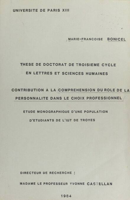 Contribution à la compréhension du rôle de la personnalité dans le choix professionnel E-BOOK