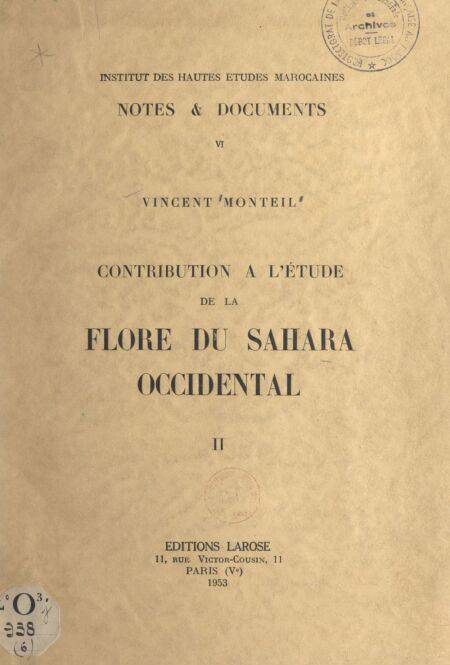 Contribution à l'étude de la flore du Sahara occidental (2). De l'arganier au karité E-BOOK