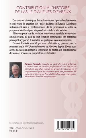 Ces courtes chroniques font suite au tome 1 paru simultanément. Destinées initialement aux « professionnels de la profession », elles se proposent de témoigner du passé récent de la vie asilaire. Elles ont pour but de restituer leur charge sensible à ces objets singuliers qui ont contribué plus qu'il n'y parait à modeler les pratiques.