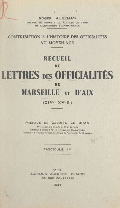 Contribution à l'histoire des officialités au Moyen Âge : recueil de lettres des officialités de Marseille et d'Aix, XIVe-XVe s. (1) E-BOOK