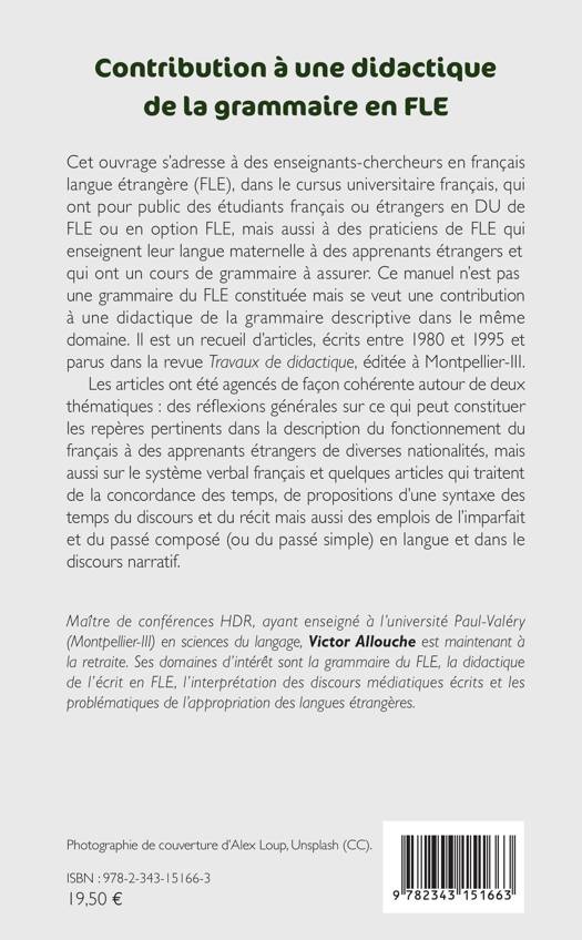 Ce manuel n'est pas une simple grammaire du FLE mais se veut une contribution à une didactique de la grammaire descriptive dans le même domaine. Il est constitué d'articles, écrits entre 1980 et 1995 parus dans la revue Travaux de didactique, éditée à Montpellier-III. Il s'adresse à des enseignants-chercheurs en français langue étrangère (FLE), dans le cursus universitaire français, mais aussi à des praticiens de FLE qui enseignent leur langue maternelle à des apprenants étrangers.