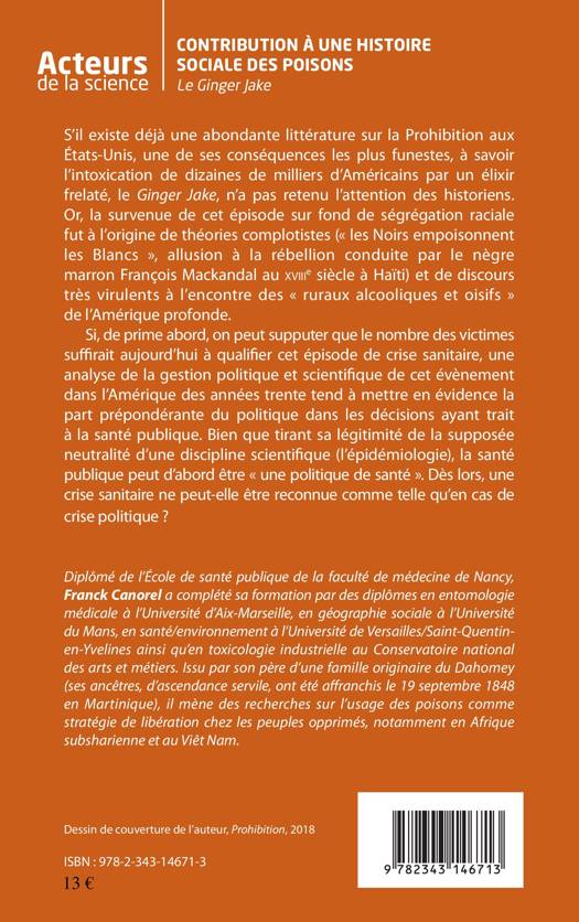 S'il existe déjà une abondante littérature sur la Prohibition aux États-Unis, une de ses conséquences les plus funestes, à savoir l'intoxication de dizaines de milliers d'Américains par un élixir frelaté, le Ginger Jake, n'a pas retenu l'attention des historiens. Or, la survenue de cet épisode sur fond de ségrégation raciale fut à l'origine de théories complotistes et de discours très virulents à l'encontre des « ruraux alcooliques et oisifs » de l'Amérique profonde. Si, de prime abord, on peut supputer que le nombre des victimes suffirait aujourd'hui à qualifier cet épisode de crise sanitaire, une analyse de la gestion politique et scientifique de cet évènement dans l'Amérique des années 30 tend à mettre en évidence la part prépondérante du politique dans les décisions ayant trait à la santé publique.