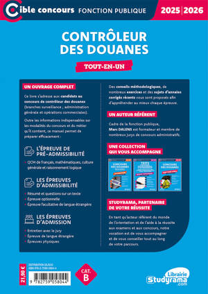 Ce livre s’adresse aux candidats au concours de contrôleur des douanes (branches surveillance ; administration générale et opérations commerciales).