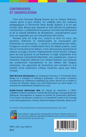 C'est avec Fortunat Obiang Essono que la critique littéraire, comme genre à part entière, fut intégrée dans les contenus pédagogiques à l'Université Omar Bongo (Gabon) à la fin des années 1980. Jusqu'à sa mort en 2012, ses positions littéraires et intellectuelles n'ont pas manqué d'alimenter la controverse : Fortunat Obiang Essono aimait la confrontation des idées, l'exigence morale et intellectuelle dans les débats publics. C'est cette posture qu'exhume le présent ouvrage.