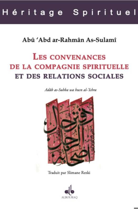 Les convenances de la compagnie spirituelle et des relations sociales - (titre en arabe : Adâb as-Suhba wa husn al-'Ichra). Genre particulier, la littérature de l'Adâb (des convenances) est très répandue. Ce livre a la particularité d'être un des premiers du genre. Savant et maître spirituel du quatrième siècle, Sulamî s'inscrit dans la catégorie des codificateurs. Ici il passe en revue les fondements du compagnonnage sous tous ses aspects. Il donne 92 définitions de convenances à autant de relations possibles. Il nous rappelle toute l'éthique des premiers musulmans et donc ce qui fit de l'islam une voie de beauté, de bonté et d'amour. Le maître mot de ces relations est l'amour, celui de Dieu et de Son Prophète bien entendu, mais aussi de son semblable. Sans respect, sans bonté, sans miséricorde à l'égard de son prochain, pas d'islam possible. C'est comme l'auteur nous le rappelle l'oubli de cet impératif qui, à partir du quatrième siècle, engendra une dégénérescence de l'islam du commun.