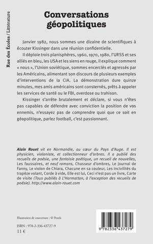 Janvier 1982, nous sommes une dizaine de scientifiques à écouter Kissinger dans une réunion confidentielle. Il déploie trois planisphères, 1960, 1970, 1980, l’URSS et ses alliés en bleu, les USA et les siens en rouge, il explique comment « nous », l’Union soviétique, sommes encerclés et agressés par les Américains, alimentant son discours de plusieurs exemples d’interventions de la CIA. La démonstration dure quinze minutes, mes amis américains sont consternés, prêts à appeler les services de santé ou le FBI, overdose ou trahison. Kissinger s’arrête brutalement et déclare, si vous n’êtes pas capables de défendre avec conviction la position de vos ennemis, n’essayez pas de comprendre quoi que ce soit en géopolitique, parlez football, c’est passionnant.
