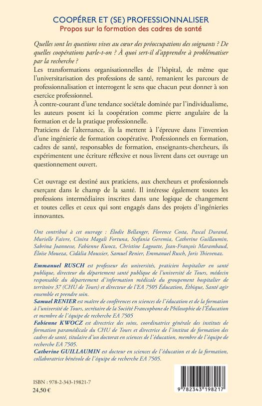 Quelles sont les questions vives au cur des préoccupations des soignants ? De quelles coopérations parle-t-on ? À quoi sert-il d'apprendre à problématiser par la recherche ? Les transformations organisationnelles de l'hôpital, de même que l'universitarisation des professions de santé, remanient les parcours de professionnalisation et interrogent le sens que chacun peut donner à son exercice professionnel. Cet ouvrage est destiné aux praticiens, aux chercheurs et professionnels exerçant dans le champ de la santé.