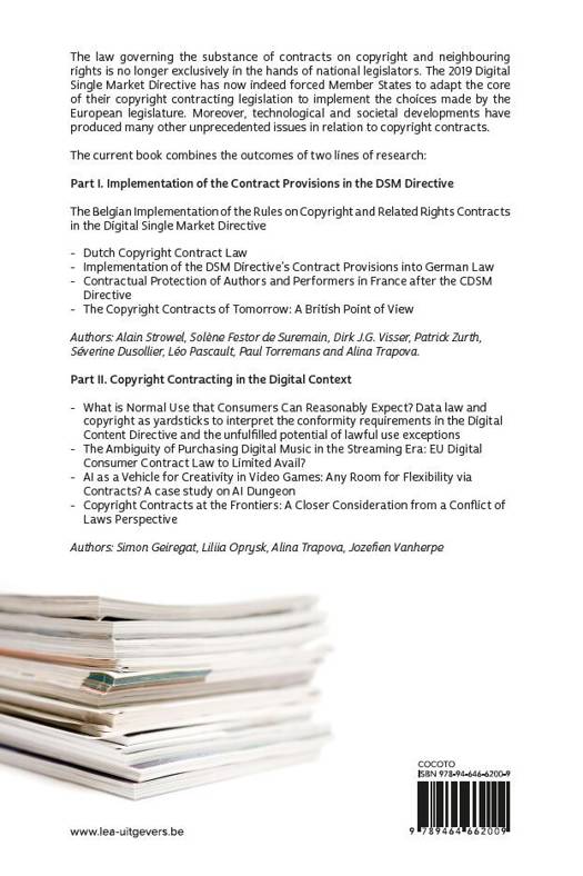 The 2019 Digital Single Market Directive has forced Member States to modify the core of their copyright contracting legislation, and technological and societal developments have produced unprecedented issues in this respect.