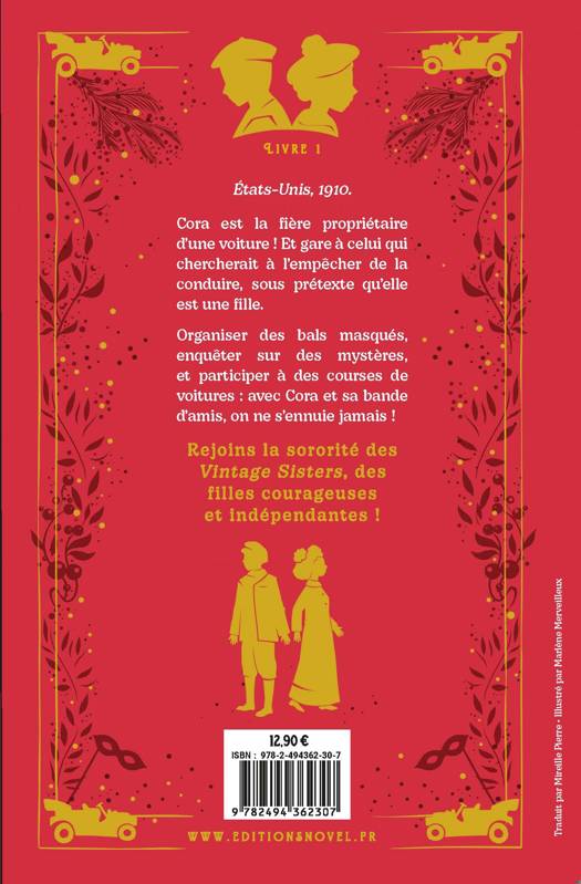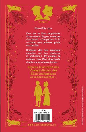 1910, États-Unis : Cora Kimball a reçu une voiture pour ses seize ans ! Et gare à celui qui essaierait de l’empêcher de la conduire, juste parce qu’elle est une fille. Hors de question, aussi, de s’habiller selon les conventions de l’époque. Audacieuse et autonome, on la traite souvent de garçon manqué, mais elle n’en a rien à faire. Avec ses deux meilleures amies, Bess et Belle, c’est parti pour des aventures folles ! Un roman rempli d’action mais aussi d’humour, écrit par une suffragette, qui prouve que les filles sont tout aussi capables que les garçons... parfois, même, plus ! La collection Les Vintage Sisters : Au tournant du xxe siècle, les histoires moralisatrices firent place à un nouveau genre : des romans pleins d’action et de rebondissements, avec pour héroïnes des jeunes filles aventurières et malignes, qui ont fait rêver les enfants pendant des décennies. À leur parution, ces séries étaient d'ailleurs souvent bannies en librairie, de peur que les lectrices se fassent des illusions sur leur futur rôle dans la société. Notre nouvelle collection rend hommage à ces premières héroïnes modernes pour la jeunesse.