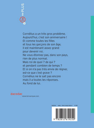 Il était une fois dans un pays lointain tout près d'ici, Cornélius. Et ce matin-là, c'est son anniversaire ! Comme tous les petits garçons et les petites filles de son âge, il va devenir roi. Car dans son royaume, tout le monde est roi ou reine. Et comme tout le monde, il va devoir décider sur quoi régner. Peut-être qu'il pourrait devenir roi des Éclairs au chocolat ou bien roi des Mammouths ? En vrai, Cornélius n'a pas la moindre idée de ce qu'il veut mais est-ce si grave que ça ? Un roman illustré qui convoque avec délicatesse et humour les codes du conte traditionnel pour mieux... les dynamiter!