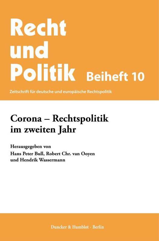 In diesen Wochen bereitet sich Deutschland auf einen neuen Corona-Herbst und -Winter vor. Recht und Politik hat in einem ersten Band Corona und Grundgesetz (Beiheft 7) zu den staatlichen Massnahmen kritisch Stellung bezogen. Im vergangenen Jahr setzten sich die massiven Grundrechtseingriffe fort. Grund genug fur Recht und Politik, das zweite Corona-Jahr in einem weiteren Beiheft rechtspolitisch Revue passieren zu lassen. Im Jahr 2021 mehrten sich nun die kritischen Stimmen in Justiz und Parlamenten, die eine oftmals als ubergriffig empfundene Exekutive an ihre rechtsstaatlichen Grenzen erinnerten. Wenn dies auch nicht immer erfolgreich und gelegentlich zu zaghaft war, bleibt doch festzuhalten, dass die liberalen Stimmen an Boden gewannen. Abschliessend werden vergleichende Aspekte zu Osterreich und Frankreich einbezogen sowie die dringende rechtspolitische Forderung erhoben, in der Gesundheitspolitik die EU-Kompetenzen zu starken.