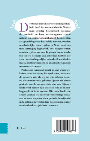 Praktische wijsheid houdt in dat wordt gekeken naar wat er op het spel staat, naar wat de gevolgen zijn als wij het mis hebben. Als er op die manier was gekeken tijdens de eerste periode van de coronacrisis, dan zou bijvoorbeeld veel eerder zijn besloten om de mondkapjesplicht in te voeren. Dit boek biedt een schets van hoe wij ons voor toekomstige crisissen kunnen wapenen door praktische wijsheid in te zetten om verstandige beslissingen onder onzekerheid en tijdsdruk te nemen.