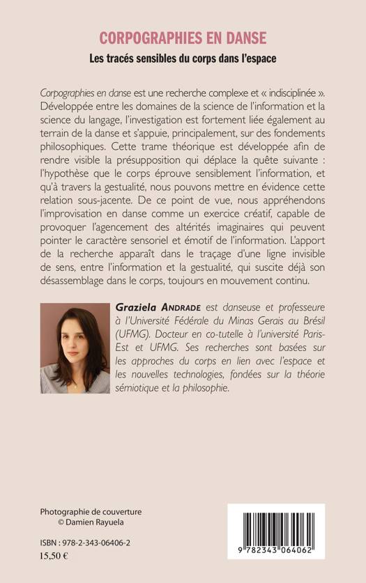Corpographies en danse est une recherche complexe et "indisciplinée". Développée entre les domaines de la science de l'information et la science du langage, l'investigation est fortement liée également au terrain de la danse et s'appuie, principalement, sur des fondements philosophiques. Cette trame théorique est développée afin de rendre visible la présupposition : l'hypothèse que le corps éprouve sensiblement l'information, et qu'à travers la gestualité, nous pouvons mettre en évidence cette relation sous-jacente.