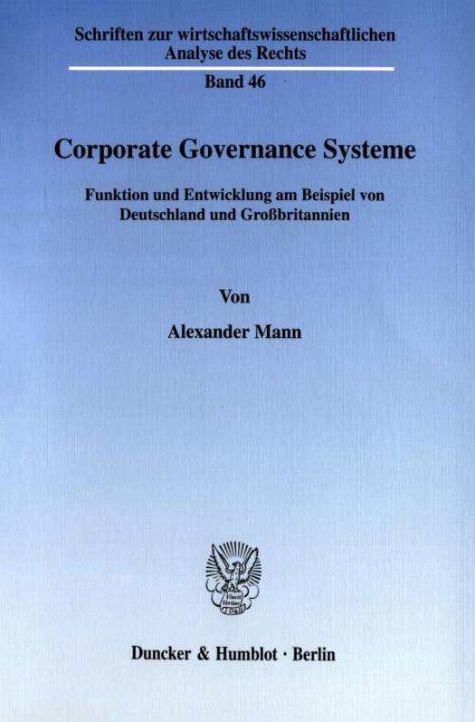 Der Verfasser entwickelt zunächst ein gedankliches Raster, das die Beschreibung von Corporate Governance Systemen mit einer Funktionsanalyse verbindet, und arbeitet Idealtypen von Systemen heraus: das stakeholder-orientierte Insider Control System und das shareholder-orientierte Outsider Control System. Im folgenden führt er für Deutschland und Großbritannien den Nachweis, daß die Systeme der beiden Länder diesen Idealtypen prinzipiell entsprechen: Beide Corporate Governance Systeme sind konsistent, aber unterscheiden sich wesentlich. Die Unterscheidung geht über stakeholder- vs. shareholder-orientiert hinaus: Im Detail ist die Funktionsweise der Unternehmenskontrolle sehr verschieden und in sehr unterschiedliche Rahmenbedingungen von Finanz- und Arbeitsmärkten eingebettet.