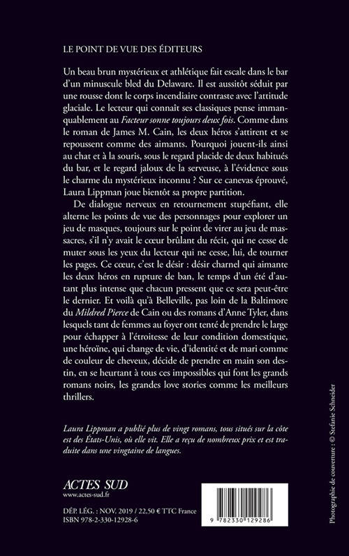 Un beau brun mystérieux et athlétique fait escale dans le bar d'un minuscule bled du Delaware. Il est aussitôt séduit par une rousse dont le corps incendiaire contraste avec l'attitude glaciale. Le lecteur qui connaît ses classiques pense immanquablement au Facteur sonne toujours deux fois. Comme dans le roman de James M. Cain, les deux héros s'attirent et se repoussent comme des aimants. Pourquoi jouent-ils ainsi au chat et à la souris, sous le regard placide de deux habitués du bar, et le regard jaloux de la serveuse, à l'évidence sous le charme du mystérieux inconnu ? Sur ce canevas éprouvé, Laura Lippman joue bientôt sa propre partition.