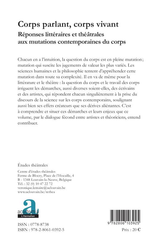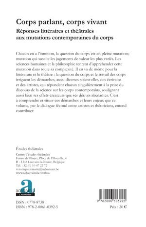 Chacun en a l'intuition, la question du corps est en pleine mutation ; mutation qui suscite les jugements de valeur les plus variés. Les sciences humaines et la philosophie tentent d'appréhender cette mutation dans toute sa complexité. Il en va de même pour la littérature et le théâtre.