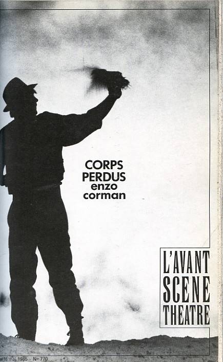 Corps perdus : (Enzo Cormann) Une histoire inspirée de l’Orestie avec des conflits qui, sans cesse, passent dans le corps des individus. Les personnages sont pris entre les rapports conflictuels présents et l’histoire de leur famille, voire dans leurs rapports d’enfance... Amos, 25 ans, parle à ses pigeons voyageurs au milieu du désert. Survient une tribu, le père et la mère, leurs deux filles, Nora, 31 ans, enceinte, Lia, 20 ans, à marier, un peintre, son fils... On échange des mots, des situations...