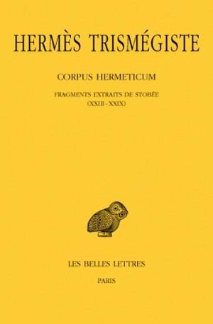 Ce volume contient vingt-neuf extraits de l'Anthologium de Stobée (recueil d'extraits, de maximes et préceptes grâce auxquels Jean de Stobi pensait régler et améliorer la nature de son fils Septimius). Ils proviennent soit de logoi d'Hermès à Tat ou Ammon, soit d'Isis à Horus, soit d'apophtegmes d'Hermès ou d'Akmon, soit, enfin, de diverses compositions attribuées à Hermès.