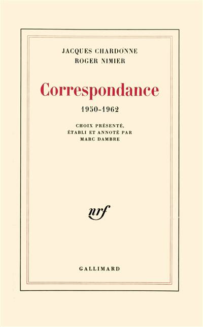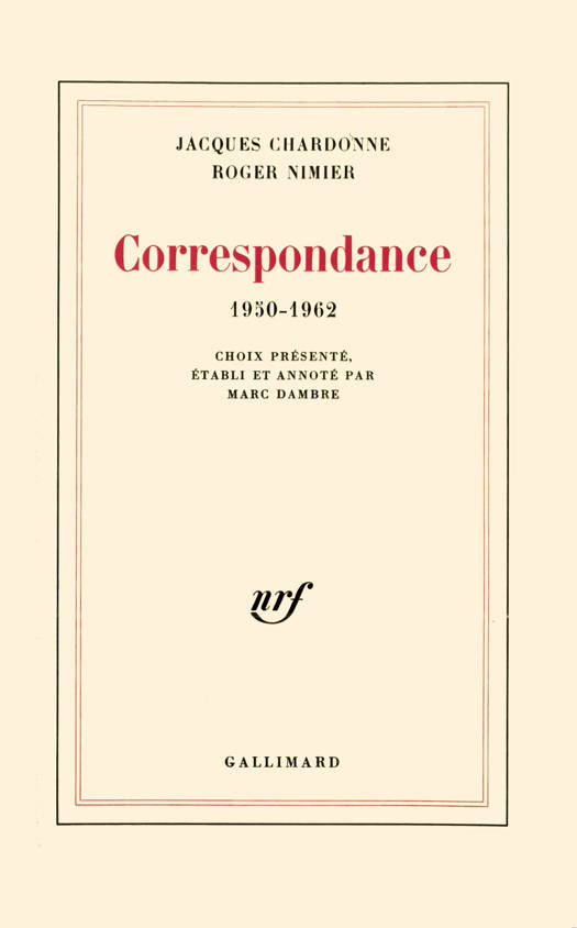 Souvent le mystère de l'amitié se reflète dans la relation épistolaire, et les auteurs n'y mettent pas le moins bon d'eux-mêmes, confessions impromptues, journal de création, Mémoires. Entre Jacques Chardonne (1884-1968) et Roger Nimier (1925-1962), cette relation fut aussi un roman. Chardonne en avait donné la transposition moraliste, Lettres à Roger Nimier. Trente ans après, Correspondance 1950-1962 offre un dialogue d'écrivains en des lettres réellement échangées. Des lettres et non pas les lettres ... Aurait-on souhaité une édition complète, la disparition de certains textes de Nimier, le caractère elliptique de certains autres et l'absence quasi générale de date auraient entraîné une lecture heurtée. Enfin, les lettres de l'aîné, trois fois plus fréquentes (mille), auraient étouffé de leur monologue la correspondance croisée, qui a bel et bien existé. Toujours ces deux amis, virtuels père et fils, cherchent à parler une langue commune et à être eux-mêmes. La correspondance dévoile le débat d'une vie, et même de deux, entre la maturité féconde et la nécessité d'un silence. Dans ces deux cent soixante-dix lettres, le " vieux Monsieur" volontiers s'abandonne et, plus qu'il n'y paraît, le cadet se livre. Mais entre maîtrise et apprentissage, les rôles ne sont pas arrêtés.