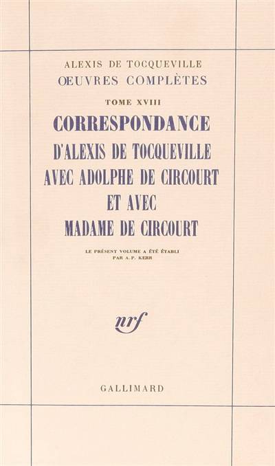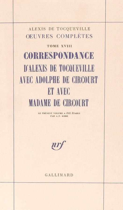 Des correspondants habituels d'Alexis de Tocqueville, le comte Adolphe de Circourt est aujourd'hui l'un des moins connus. Il était né en 1801, devint haut fonctionnaire, notamment au ministère des Affaires étrangères. Il démissionne après la révolution de 1830. Il épouse une Russe, Anastasie de Klustine, voyage beaucoup à travers l'Europe, écrit. Mme de Circourt ouvre un salon qui jouit d'un grand succès. On y rencontrait les artisans du Risorgimento italien ; des intellectuels russes comme Tourgueniev ; Vigny et Lamartine. Thiers pouvait y côtoyer sans incident des légitimistes. Mme de Circourt est morte en 1863 et Adolphe de Circourt en 1879. "Circourt est mon dictionnaire", disait Tocqueville. À quoi un ami rétorquait : "Il a un défaut qu'un dictionnaire n'a pas. Il s'ouvre sans qu'on veuille le consulter." Tocqueville, comme avant lui Lamartine, semble avoir trouvé en Circourt un informateur érudit qui effectuait pour lui le premier tri dans la masse des documents à consulter. Circourt connaissait tous les bruits du monde politique, et avait de très sérieuses lumières sur les peuples non européens et le monde germanique. On perçoit, à travers cette correspondance, que Tocqueville entretenait un soupçon de supériorité vis-à-vis de Circourt et que Circourt traitait Tocqueville avec déférence. Il faut ajouter à cela une nuance de mélancolie, dans les lettres de Circourt, qui vient de son sentiment d'échec intellectuel et d'exclusion politique. L'intérêt primordial de cette correspondance reste pourtant l'aide que Circourt a pu apporter à Tocqueville pour la préparation de L'Ancien Régime.