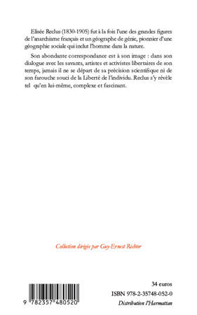 Elisée Reclus (1830-1905) fut à la fois l'une des grandes figures de l'anarchisme français et un géographe de génie, pionnier d'une géographie sociale qui inclut l'homme dans la nature.Son abondante correspondance est à son image : dans son dialogue avec les savants, artistes et activistes libertaires de son temps, jamais il ne se départ de sa précision scientifique ni de son farouche souci de la Liberté de l'individu. Reclus s'y révèle tel qu'en lui-même, complexe et fascinant.