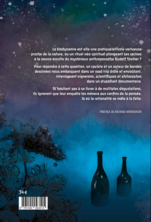 Intégrale de la trilogie, ce docu-fiction est le résultat de 3 ans d'enquête. Un auteur de bandes dessinées et son caviste partent à la découverte de différentes méthodes viticoles controversées que sont la biodynamie, méthode bio à la mode, occulte et ésotérique, et la méthode conventionnelle qui abuse souvent des pesticides. Mais Jean-Marie, le caviste, disparaît mystérieusement. JB, l'auteur de BD, part à sa recherche et découvre dans sa quête les théories anthroposophiques, berceau de la biodynamie. Entre pesticides, médecines parallèles, zététique, occultisme et lobbies, ce docu-fiction vous mènera aux confins de la pensée, où la rationalité se mêle à la folie. Le caviste aurait-il lui aussi succombé aux charmes de cette doctrine radicale ? Si l'histoire de l'auteur et du caviste est totalement romancée, les entretiens qui jalonnent l'histoire sont tous retranscrits fidèlement. Préface de Richard Monvoisin, docteur en didactique des sciences, Université Joseph Fourier, Grenoble.