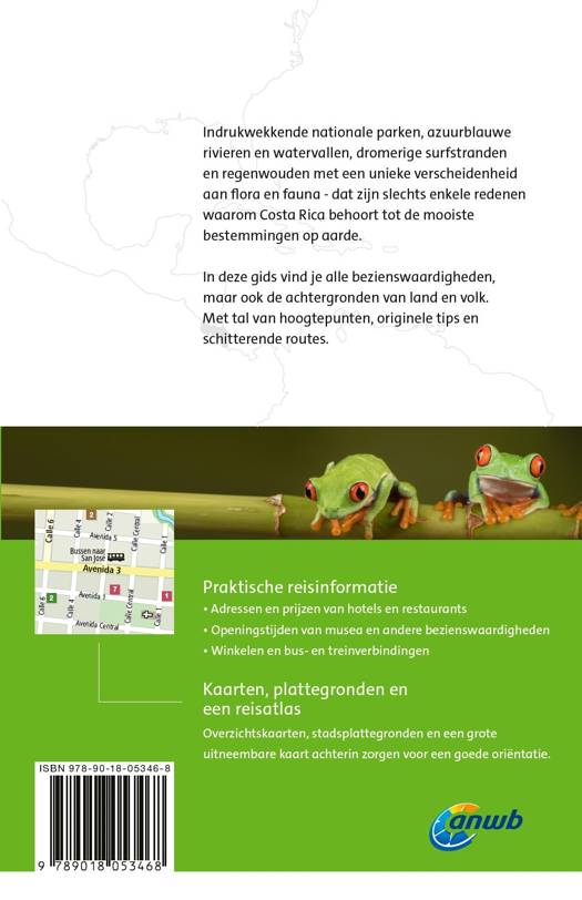 De uitgebreide Costa Rica reisgids telt meer dan 400 pagina’s boordevol hoogtepunten, originele tips, schitterende wandelroutes en alles over de achtergronden van land en volk. Daarnaast alle praktische informatie zoals openingstijden van musea, tips voor overnachtingen en vervoerstijden. Ook handig: diverse suggesties voor lange en korte rondreizen door de streek. Inclusief stadsplattegronden, overzichtskaarten en achterin een grote uitneembare kaart. Kortom: een onmisbare ANWB gids voor een geweldige rondreis door Costa Rica.
