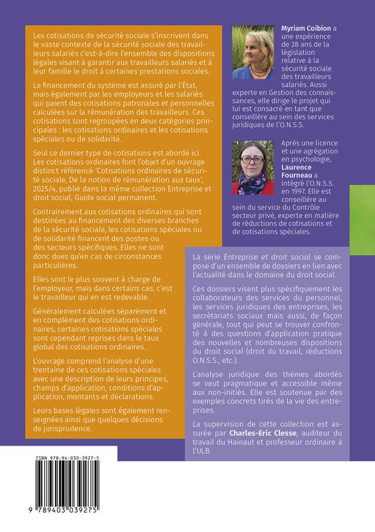 Les cotisations ordinaires font l’objet d’un ouvrage distinct référencé ‘Cotisations ordinaires de sécurité sociale, De la notion de rémunération aux taux’, 2025/4, publié dans la même collection Entreprise et droit social, Guide social permanent.