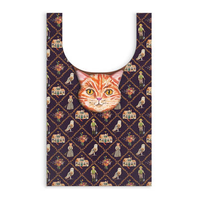 SHOPPING BAG - Galison's Cottage Cats Packable Nylon Tote Bag is a celebration of cozy countryside charm and feline whimsy. Featuring delightful artwork of cats tending gardens, lounging among blooms, and enjoying cottage life, this reusable tote brings a playful touch to every outing. Crafted from durable nylon, it's a stylish, sustainable alternative to single-use plastics--and folds neatly into a compact pouch shaped like a cat's head, making it perfect for errands on the go.