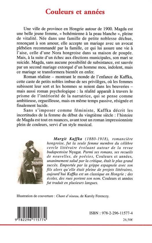 Une ville de province en Hongrie autour de 1900. Magda est une belle jeune femme, "bohémienne à la peau blanche", pleine de vitalité. Née dans une famille de petite noblesse déchue, elle accepte un mariage avec un avocat recommandé par la famille. Mais son mari se suicide, et, son deuxième mariage se transformera en enfer. Roman réaliste et psychologique, Kaffka y décrit les incertitudes de la femme du vingtième siècle: l'histoire de Magda est tout en nuances, à la manière impressioniste, servi d'un style musical.