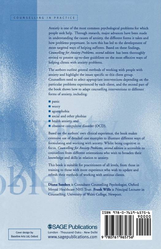 Anxiety is one of the most common psychological problems for which people seek help. Through research, major advances have been made in understanding the causes of anxiety, the different forms it takes and how problems perpetuate. Based on these findings, Counselling for Anxiety Problems, Second Edition presents accessible and up-to-date guidelines on the most effective ways of helping clients with anxiety problems.