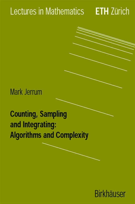 These notes had their origin in a postgraduate lecture series I gave at the Eid- genossiche Technische Hochschule (ETH) in Zurich in the Spring of 2000. I am very grateful to my hosts, the Forschungsinstitut fUr Mathematik at ETH, for providing the ideal opportunity to develop and present this material in what I hope is a reasonably coherent manner, and also for encouraging and assisting me to record the proceedings in these lecture notes. The subject of the lecture series was counting (of combinatorial structures) and related topics, viewed from a computational perspective. As we shall see, "related topics" include sampling combinatorial structures (being computationally equivalent to approximate counting via efficient reductions), evaluating partition functions (being weighted counting) and calculating the volume of bodies (being counting in the limit). We shall be inhabiting a different world to the one conjured up by books with titles like Combinatorial Enumeration or Graphical Enumeration. There, the prob- lems are usually parameterised on a single integer parameter n, and the required solutions are closed form or asymptotic estimates obtained using very refined and precise analytical tools.