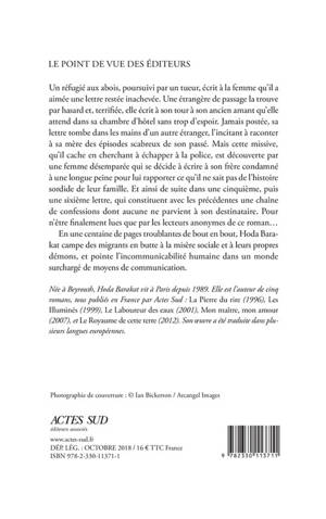 En une centaine de pages troublantes de bout en bout, Hoda Barakat campe des migrants en butte à la misère sociale et à leurs propres démons, et pointe l'incommunicabilité humaine dans un monde surchargé de moyens de communication.