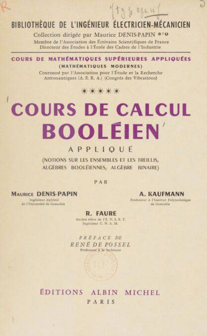 Cours de calcul booléien appliqué : notions sur les ensembles et les treillis, algèbres booléiennes, algèbre binaire : mathématiques modernes