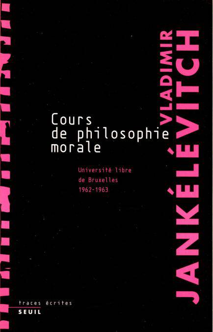 Le Cours de philosophie morale de Vladimir Jankélévitch fut à l'origine professé à l'Université libre de Bruxelles en 1962. Mais il est fort différent des cours prononcés à la Sorbonne et publiés sous forme enregistrée, dont l'écrit ne saurait rendre les célèbres crescendos et le mode musical. Il s'agit ici de tout autre chose : Jankélévitch se montre d'abord très didactique et n'hésite pas à faire des références précises et nombreuses à l'histoire de la philosophie. Pour autant, il n'abandonne pas ses thèmes de prédilection. La singularité et l'intérêt de ce cours, où se rejoignent le professeur et le philosophe de la morale, résident précisément dans le croisement de ces deux "lignes" de pensée. Car, comme le rappelle Vladimir Jankélévitch, "la morale [...] tend à envahir l'existence entière [...]. Il n'est rien d'humain qui ne soit moral".