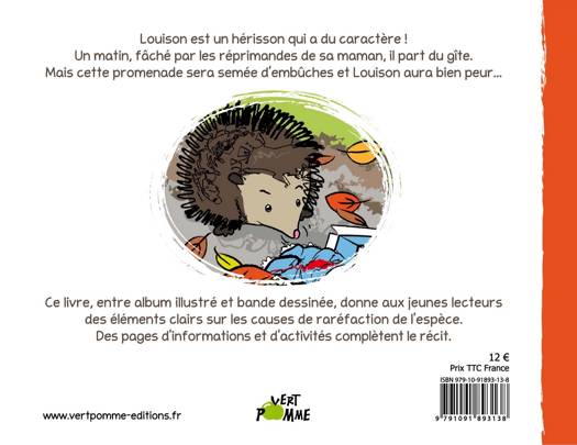 Louison est un hérisson qui a du caractère ! Un matin, fâché par les réprimandes de sa maman, il part du gîte. Mais cette promenade sera semée d'embûches, et Louison aura bien peur... Cet ouvrage, entre album illustré et bande dessinée, donne aux plus jeunes des éléments clairs sur les causes de raréfaction de l'espèce. Des pages d'informations sur le hérisson et de petits jeux complètent le récit.
