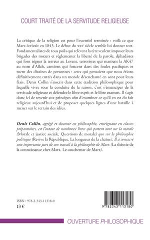 La critique de la religion est pour l'essentiel terminée : voilà ce que Marx écrivait en 1843 (Critique de la philosophie du droit de Hegel). Le début du XXIème siècle semble lui donner tort. Fondamentalismes, djihadisme, terrorisme : ceux qui pensaient que nous étions définitivement entrés dans un monde matérialiste en sont pour leurs frais. Mais il existe une tradition philosophique pour laquelle vivre sous la conduite de la raison permet de s'émanciper de la servitude religieuse. Il s'agit donc d'en revenir aux principes afin d'examiner ce qu'il en est du fait religieux aujourd'hui.