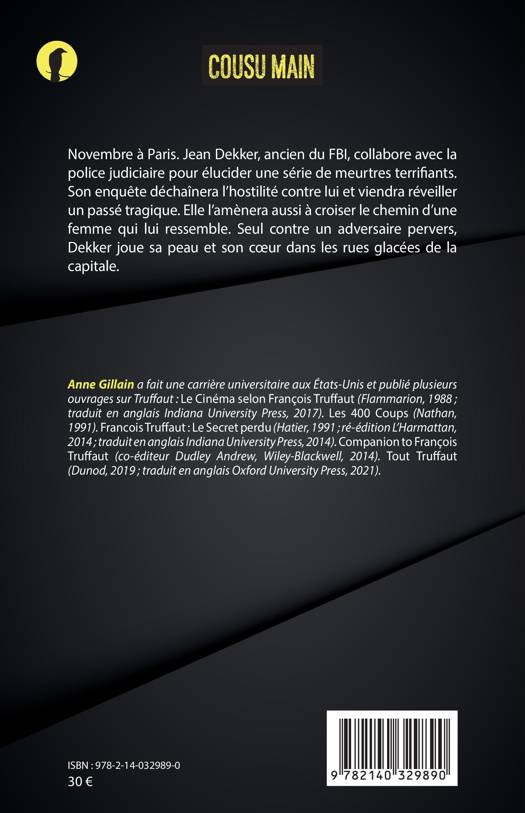 Novembre à Paris. Jean Dekker, ancien du FBI, collabore avec la police judiciaire pour élucider une série de meurtres terrifiants. Son enquête déchaînera l'hostilité contre lui et viendra réveiller un passé tragique. Elle l'amènera aussi à croiser le chemin d'une femme qui lui ressemble. Seul contre un adversaire pervers, Dekker joue sa peau et son cœur dans les rues glacées de la capitale.