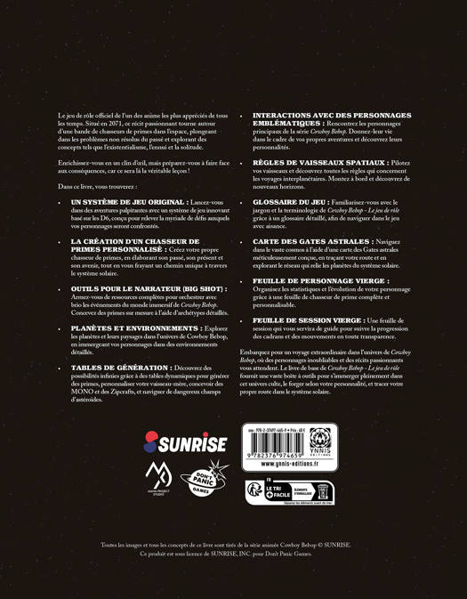 Embarquez pour un voyage extraordinaire dans l’univers de Cowboy Bebop, où des personnages inoubliables et des récits passionnants vous attendent. Le livre de base de Cowboy Bebop - Le jeu de rôle fournit une vaste boîte à outils pour s’immerger pleinement dans cet univers culte, le forger selon votre personnalité, et tracer votre propre route dans le système solaire.